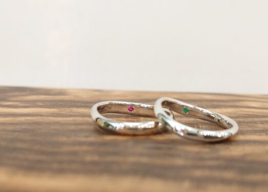 ▲左:ルビー、右:エメラルドを内側にお留めした例