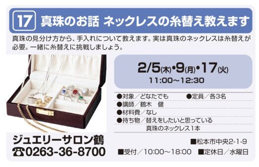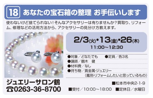 まちゼミ2026開催のお知らせ|真珠の糸替え・宝石箱の整理・リング体験をまちゼミで!受付開始1/24~ご予約はお早めに!